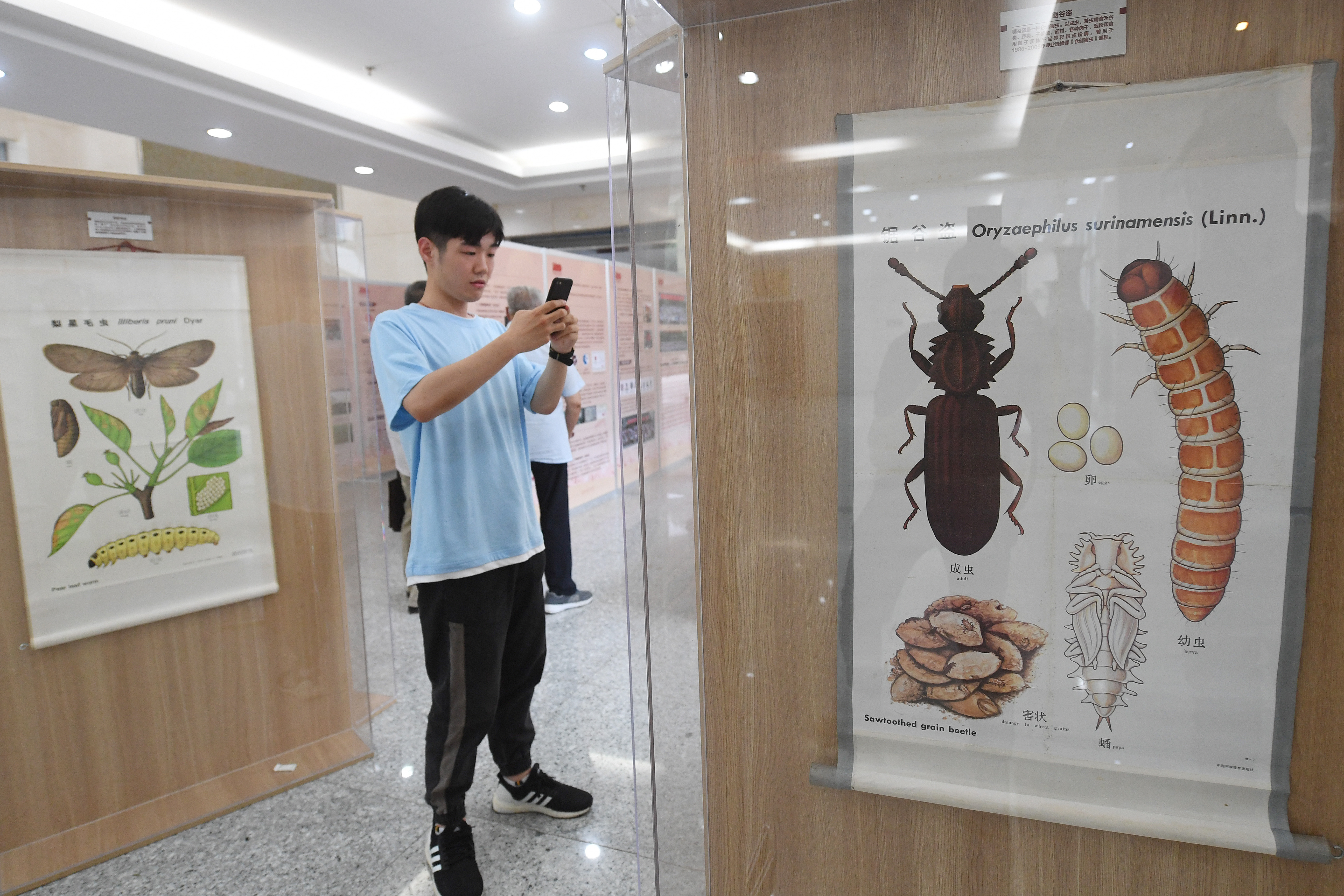 历史实物展板块,展出了各个时代的教材、教具等珍贵资料,再现了南农植保人赓续奋进、为中国农业培育英才的历程。