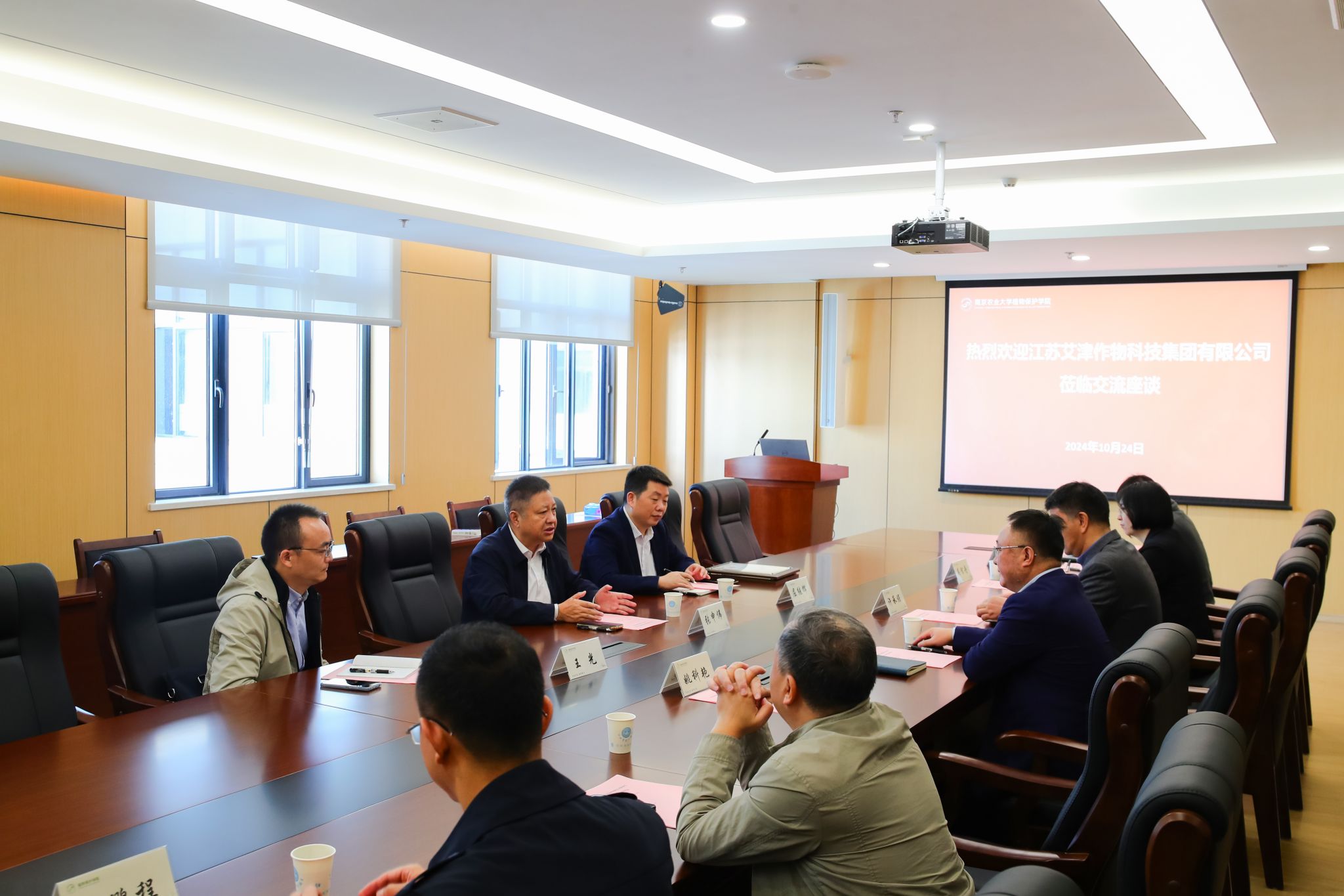 10月24日上午,江苏艾津作物科技集团有限公司董事长张申伟、副总裁屈继辉、市场与技术事业部副总经理王光来我校座谈交流。校党委常委、副校长单正丰接待了张申伟董事长一行。座谈会由冰球突破mg正规官网党委书记许承保主持。