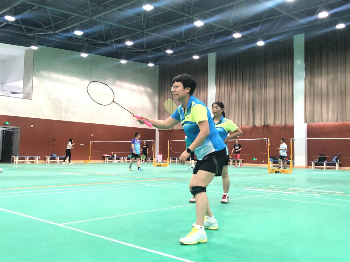 羽毛球比赛分为教职工、研究生和本科生三个团队,以团队为单位参加男单、女单、男双、女双、混双五个项目,每个项目打一局21分,每胜一局积一分,以积分排名决定团队名次。比赛开始前,参赛人员进行赛前热身,调整状态,积极备战。