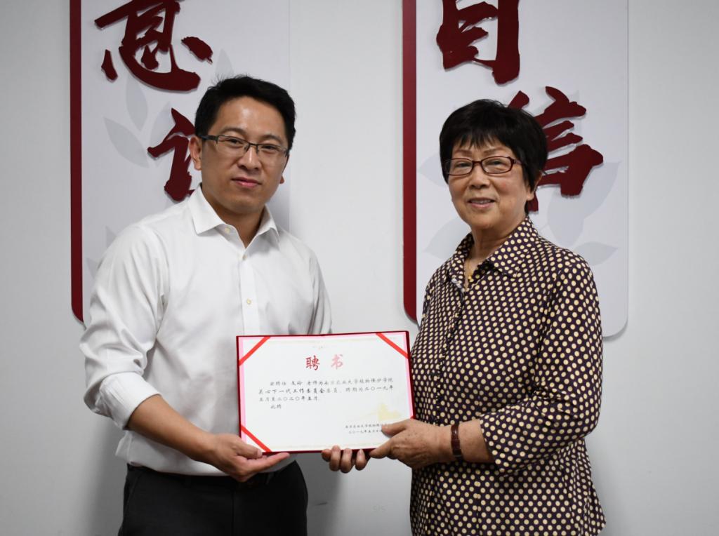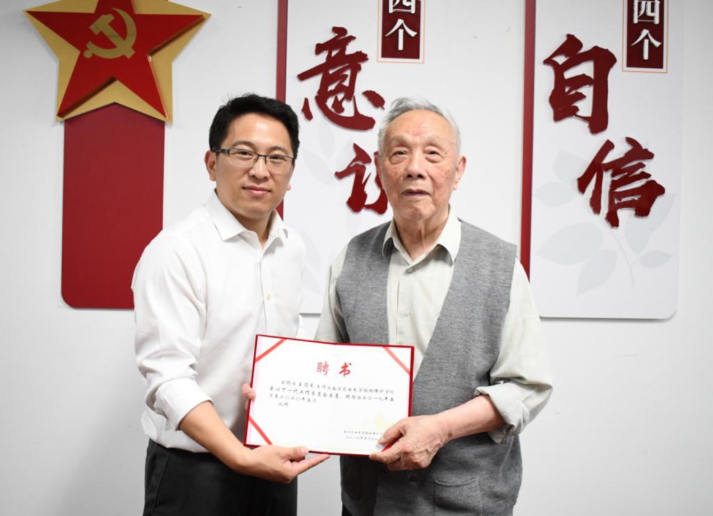 会上,聘任邵刚为冰球突破mg正规官网关心下一代工作委员会主任,吴耀清为委员会常务副主任,沈晋良、陈进为委员会副主任,王荫长、魏大为、文玲为委员会委员,汪越为委员会秘书。邵刚为老教授们颁发聘书。