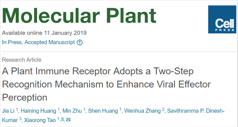 “与植物的基础抗性所不同,植物胞内免疫受体所监测的对象是入侵到细胞内的病原菌。当病原菌已经入侵到植物细胞之内了,这时对植物来说,敌人都进入了自己的领地了,国家已经到了非常危险的时刻,因此植物胞内免疫受体一旦监测到入侵到细胞内的病原菌效应蛋白,就会在病原菌侵染点启动细胞程序化死亡,发动对病原菌强烈的国防战争。但是一旦发动战争,植物细胞就得付出惨重的代价,因此植物启动免疫防御系统必须精准。我们发现Sw-5b免疫受体蛋白进化出了一种新的精确识别病原菌的机制,它通过两个独立的感知域并采用两步特异性识别病毒效应蛋白,这表明Sw-5b介导的对病毒的国防战争在启动的关键步骤上是受到精确调控的,受体蛋白通过两步精确识别双重保障辨别敌友之分,精准启动对病毒的防卫反应。同时这种新的识别机制能够显著增强对病原物监测的灵敏度,这有利于植物在病原物侵染初期迅速启动抗病毒反应,将少数初侵染的敌军消灭在萌芽之中”。论文通讯作者陶小荣教授表示。