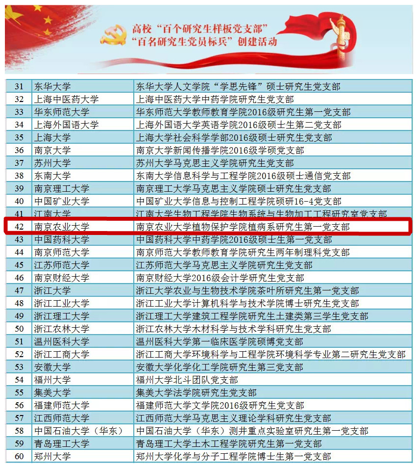 冰球官网植病系研究生第一党支部入选全国高校“百个研究生样板党支部”