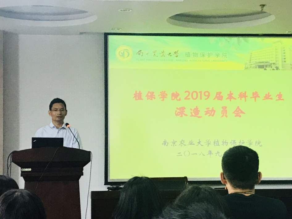 2018年9月7日上午10:00,冰球突破mg正规官网于理科楼C303召开了2019届本科毕业生深造动员会,2019届全体毕业生参加了此次大会。会议由学院党委副书记黄绍华主持,植物病理学系教授窦道龙、昆虫学系教授王备新以及副教授金琳、农药系教授高聪芬出席了本次会议。