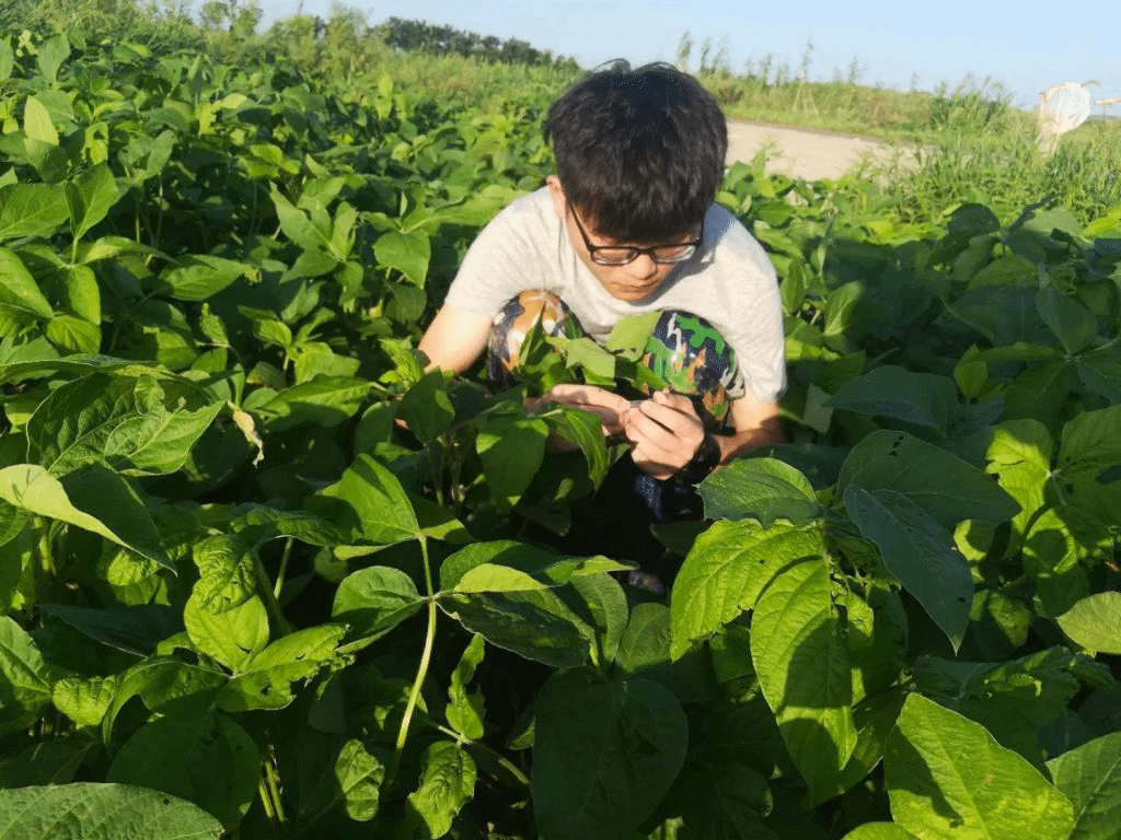 第二天,同学们迎着清晨的第一缕阳光,在几位老师的带领下前往稻田,实习正式拉开序幕。一部分同学穿上护具,拿着工具在水稻田中对病虫害情况进行细致的统查;另一部分同学则在田边收集各类昆虫和病叶标本。同学们在实验室利用解剖镜和显微镜等工具,通过查阅相关的资料,鉴定昆虫和病原物。组员和组间,分工明确,相互协作。