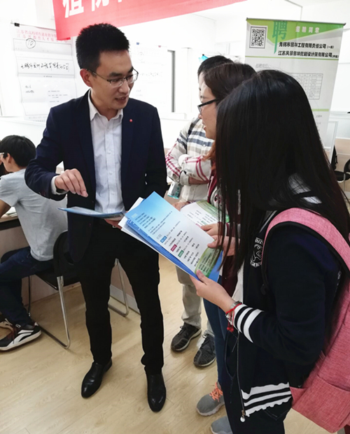 4月25日下午两点半,冰球突破mg正规官网在就业指导中心招聘大厅成功举办了2018届毕业生专场双选会。包括上海佳得安环境科发展有限公司在内共有34家公司参与了本次双选会。冰球突破mg正规官网党委副书记黄绍华以及辅导员李艳丹、汪越到场协调各方面工作。