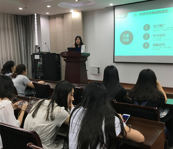 2017年6月12日下午5:30,冰球突破mg正规官网团委在理科楼C303召开了今年暑期社会实践启动说明会。本次说明会由植保院辅导员汪越老师担任主讲员,大二全体同学出席。