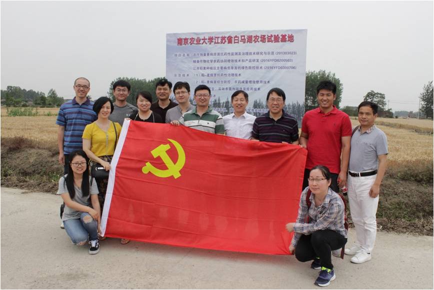 为把“两学一做”学习教育落到实处,进一步提升党员形象,树立党员先锋模范带头作用,充分展示、宣传党员教师在“两学一做”学习活动中的风采,进一步激发青年党员爱岗敬业、教书育人的热情和动力,2017年6月3日,冰球突破mg正规官网农药系教工党支部开展了“下基层、学先辈”活动,14位支部党员在支部书记高聪芬教授的带领下,前往位于江苏省淮安市的试验基地白马湖农场考察小麦赤霉病的发生和防治效果。