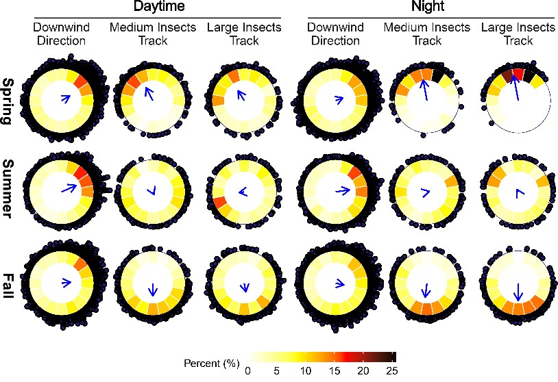 迁徙在动物中非常普遍,景象十分壮观,如候鸟迁飞、非洲角马大迁徙、大马哈鱼洄游。动物迁徙,不仅让捕食者、猎物或者竞争者实现了跨区域流动,也带来了物质和能量的传送、病原体的传播,从而对整个生态系统产生深远影响。无数的昆虫也通过迁飞(迁徙)来适应资源和栖境的季节性变化。但由于昆虫个体小,迁飞又发生在数百米、甚至2-3 km的高空,远超出人类肉眼所及的范围。因此,昆虫迁飞行为以及它对生态系统的影响仍知之甚少。特定设计的昆虫垂直雷达为监测和研究迁飞性昆虫提供了一种无可替代的强有力的工具。该论文分析了英国洛桑试验站(Rothamsted Research)位于英国南部的2台昆虫垂直雷达长达10年的监测数据,计算了所有迁飞昆虫种群的数量和生物量。每年约3.5万亿迁飞昆虫飞过英国南部,其生物量约3200吨。除了小型昆虫(体重10mg以下)外,它们通过主动寻找和利用有利的季节性气流来实现远距离迁飞。尽管大多数年份,春季北迁和秋季南迁的昆虫生物量基本持平,但大规模的昆虫迁飞带来的物质和能量的传输,仍将影响全球生态系统的生态服务、生态过程以及生物地球化学过程。