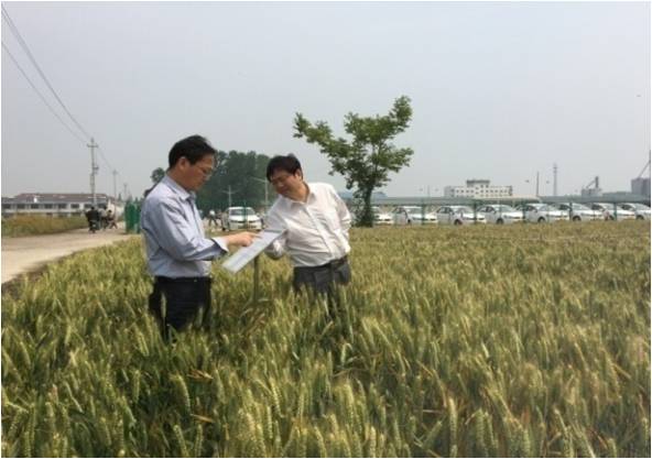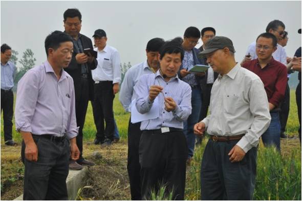 2016年5月24日,冰球突破mg正规官网组织了包括中国科学院院士朱作言、康乐和中国工程院院士朱有勇和陈剑平在内的100余位专家考察了我校周明国教授主持的小麦赤霉病防控技术示范现场。专家们分别考察了“冰球突破mg正规官网江苏省白马湖农场试验示范基地”和“冰球突破mg正规官网洪泽县朱坝镇小麦高产示范基地”抗药性小麦赤霉病治理及病害综合防控农药减量使用技术示范基地。