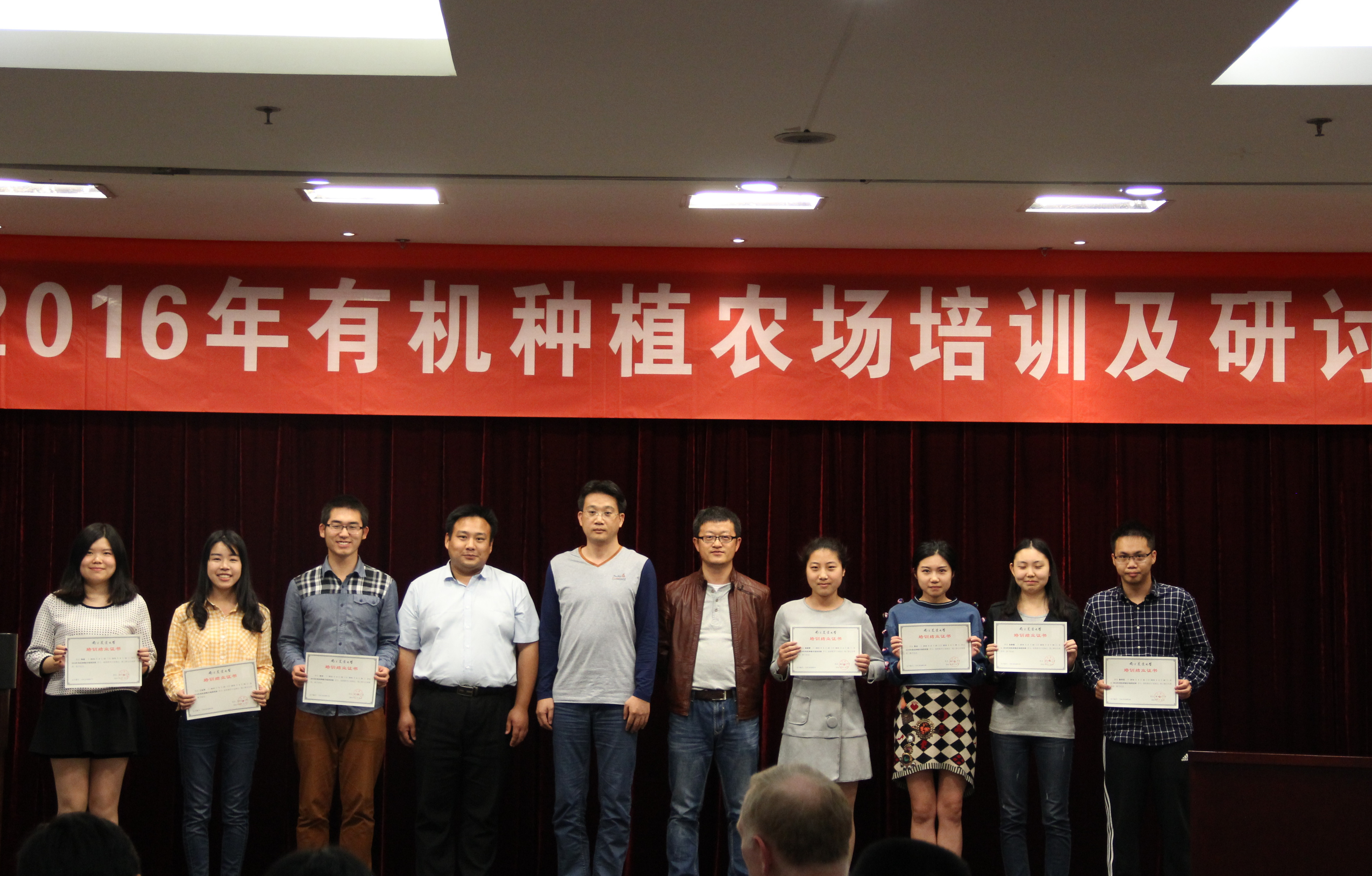 4月23-25日,冰球突破mg正规官网2016年有机种植农场培训及研讨会在翰苑大厦召开。冰球突破mg正规官网新农村发展研究院副院长陈巍,冰球突破mg正规官网冰球突破mg正规官网书记吴益东出席开幕式。冰球突破mg正规官网冰球突破mg正规官网副院长叶永浩出席闭幕式。包括美国威斯康星大学教授Douglas Irving Rouse,阿拉斯加州立大学教授Jennifer Huang McBeath,美国罗代尔研究所执行理事Jeff Moyer,罗代尔研究所首席科学家Kristine Nicholes博士,台湾农委会有机农业顾问许晓岚,中国协和医科大学药用植物研究所研究员徐常青,冰球突破mg正规官网工学院教授汪小旵,冰球突破mg正规官网生命科学院教授强胜,冰球突破mg正规官网冰球突破mg正规官网教授李元喜,冰球突破mg正规官网冰球突破mg正规官网教授郭坚华,北京奥科美技术服务有限公司董事长兼总经理蓝海,天津市亚鹏园林工程有限公司董事长兼总经理、天津森泉农场董事长胥旭,秦邦吉品农业开发有限公司董事长秦俊,无锡本元生物科技有限公司总经理陈刘军,河北工程大学食品科学与工程学院郭亚辉教授在内的15位授课老师,以及来自全国20个省份地区116家单位的232位学员和14名受资助大学生,共246位有机种植代表参与会议。