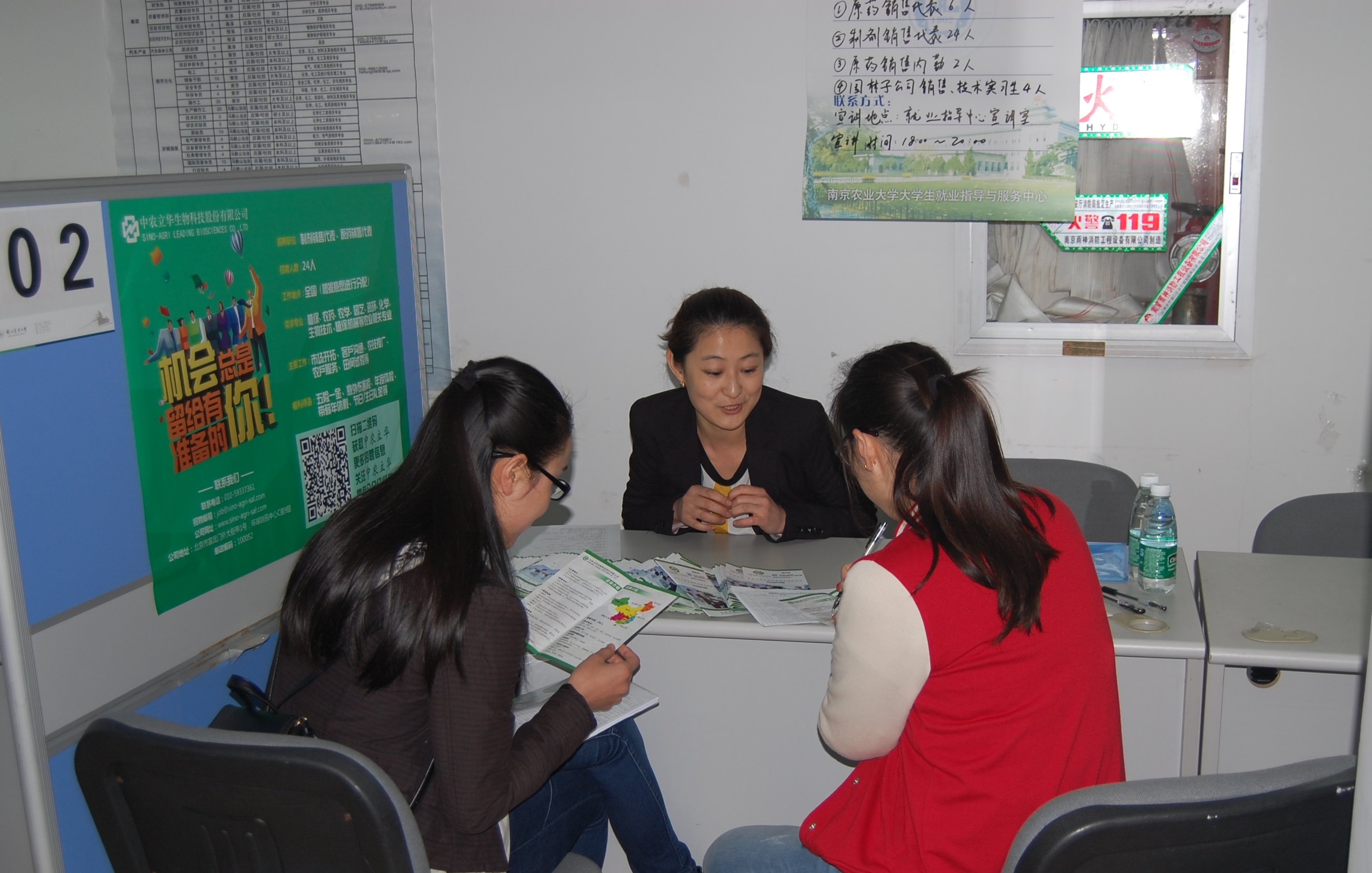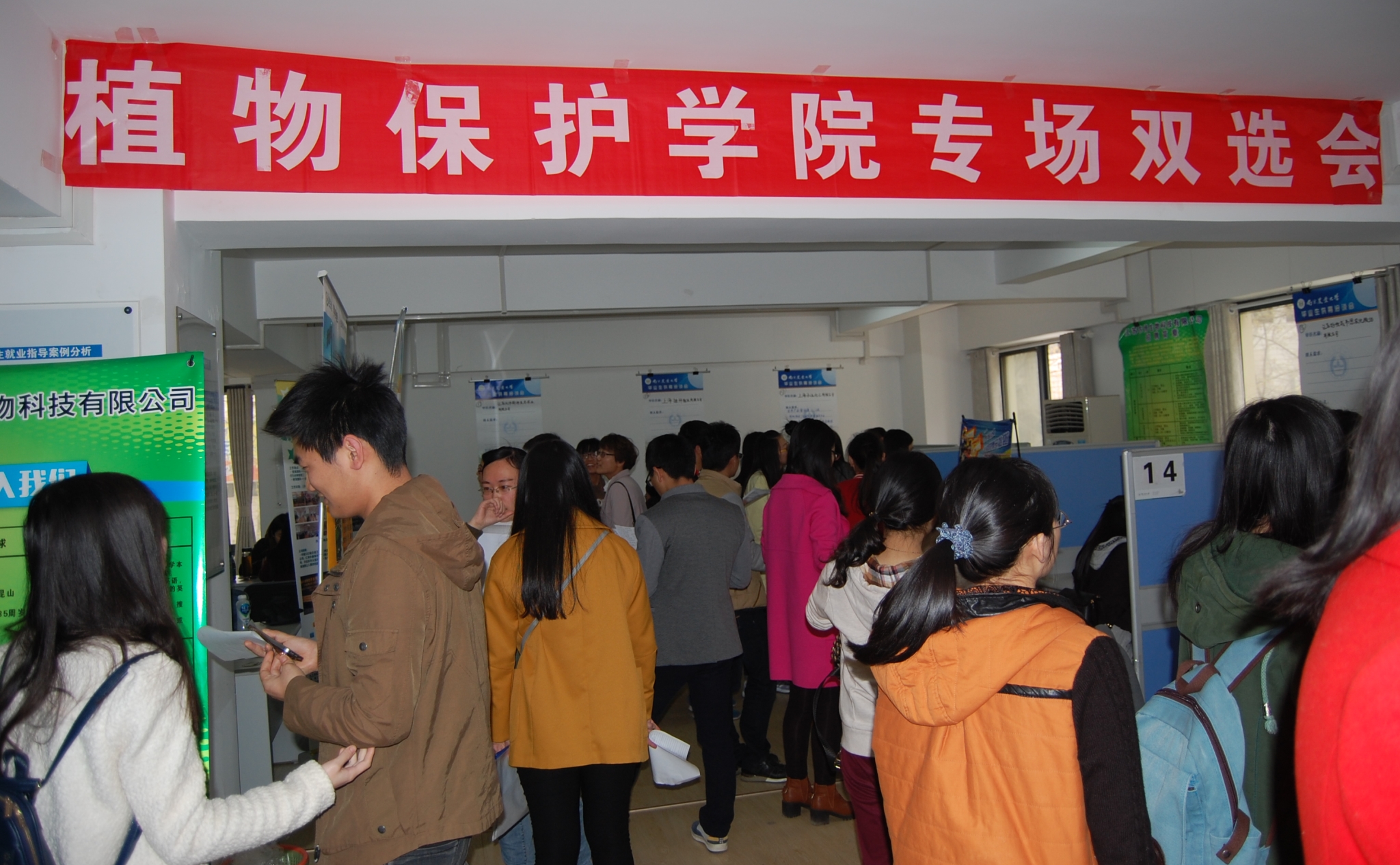 面临毕业的大四学生提前到场,他们观察、审视每一个招聘单位的海报宣传,随后选出了自己心目中的就业单位。应聘毕业生表现更加理性,他们在关心薪资前景的同时,更为详细地咨询了企业文化与培训、未来发展前景、合同签订等相关事宜。招聘场面热闹非凡,许多不应聘的学生也前来询问就业情况,提前预备招聘知识,为将来打好基础。