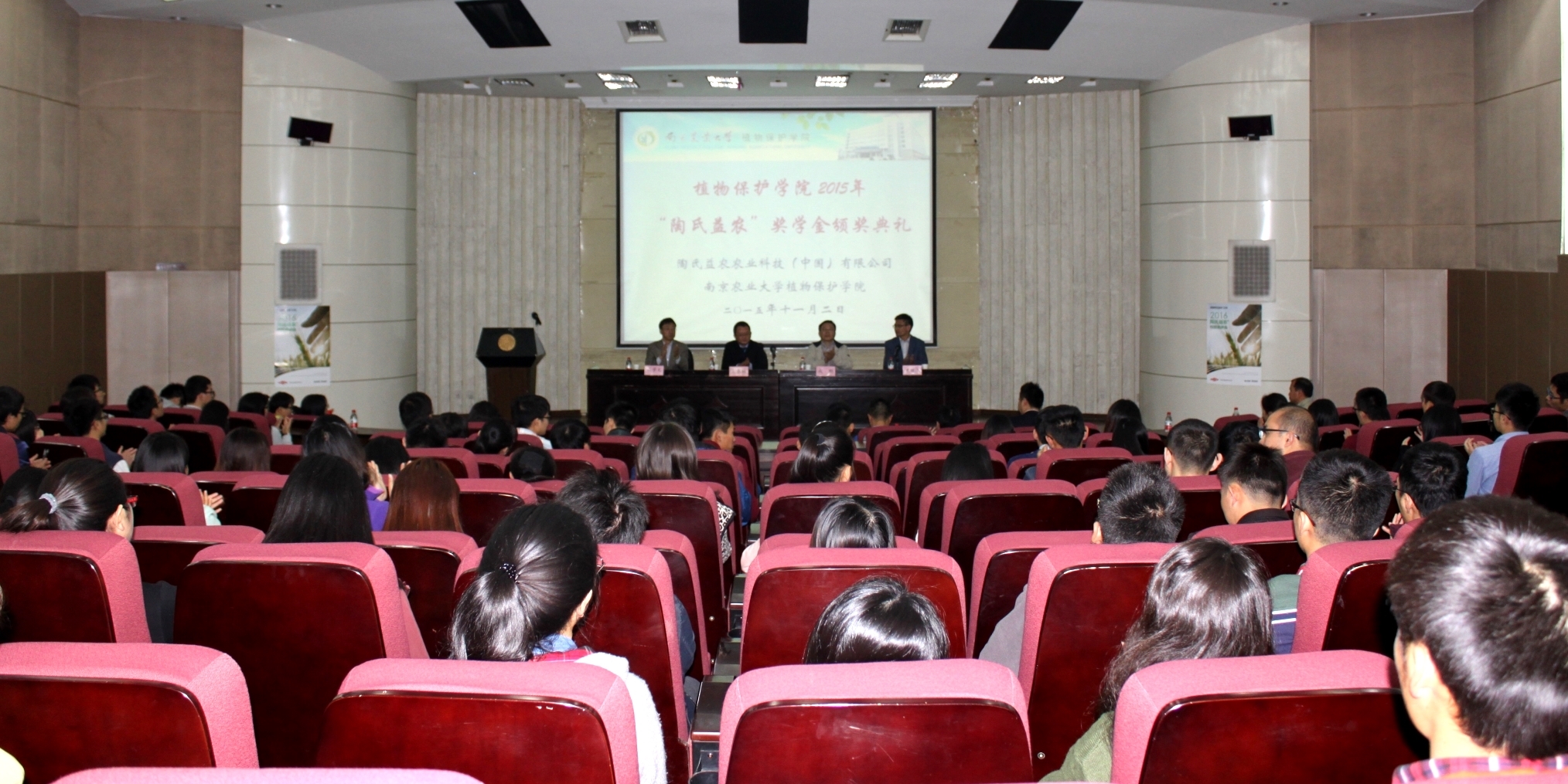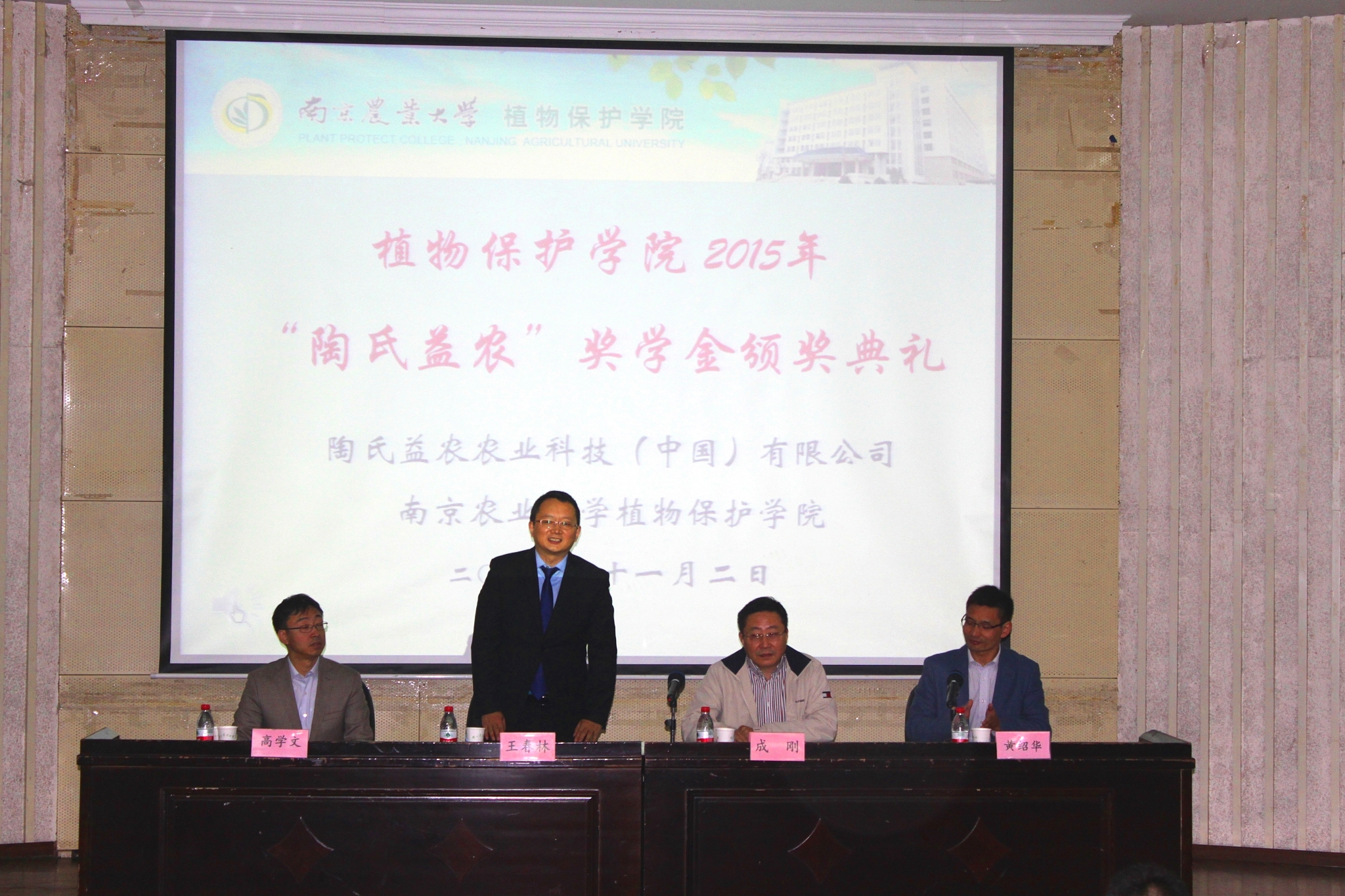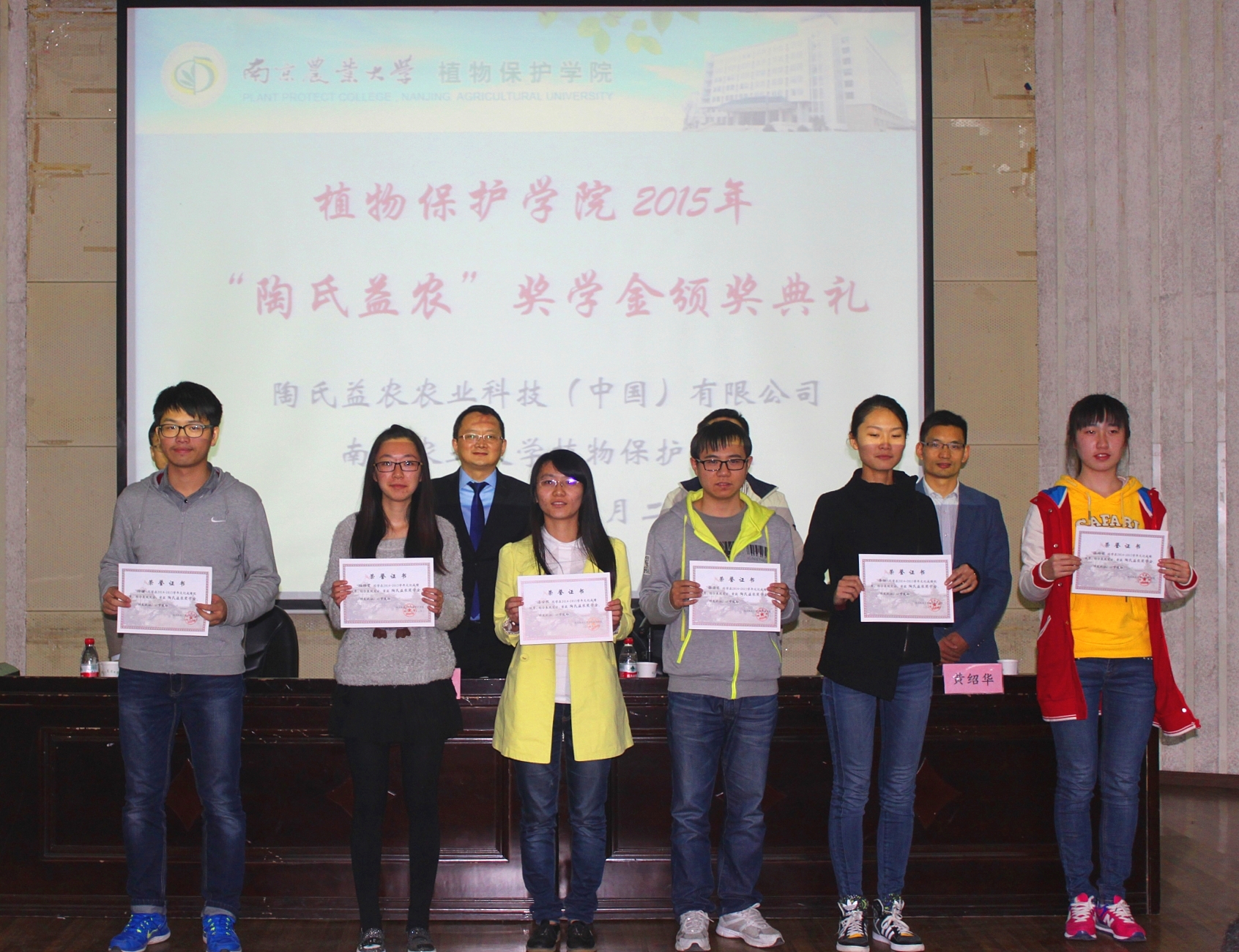11月2日下午2点半,冰球突破mg正规官网在图书馆报告厅举行陶氏益农奖学金颁奖典礼。陶氏益农大中华区技术传承总监王春林,陶氏益农江苏省销售经理成刚,植保院副院长高学文以及陶氏益农其他领导出席此次典礼。院党委副书记黄绍华担任主持人,获奖学生及2016届毕业生参与仪式。