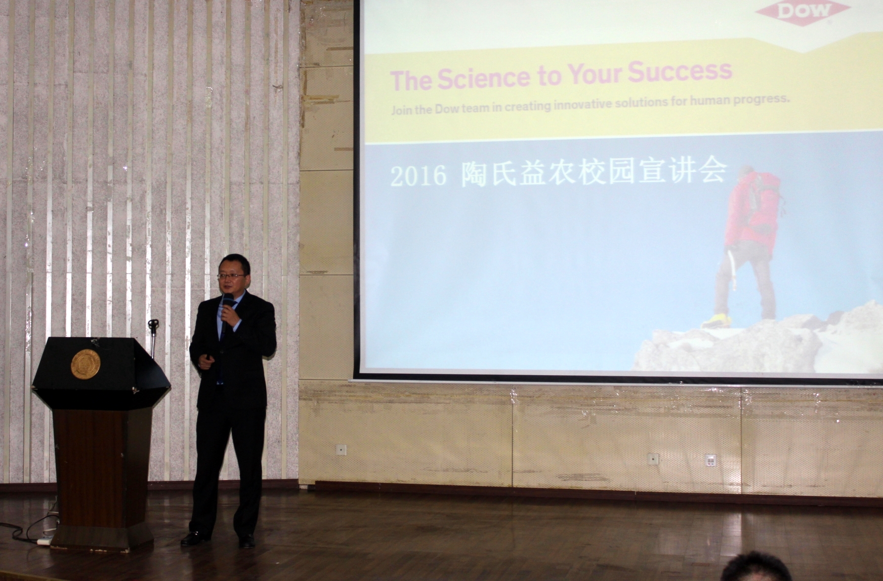 紧接着,王春林先生向在座的同学介绍他们公司的基本情况和未来发展。他强调农业自古就是一个国家立国之根本,陶氏益农此项活动旨在鼓励大学生积极进取,争取成为能为社会造福的新型农业人才,进而促进未来中国农业的发展,以此来推动社会的进步。他希望获奖同学戒骄戒躁,再接再厉。他说其他同学应该以获奖同学为榜样,努力学习,提升自己。此外,他还积极邀请同学们去公司实习。