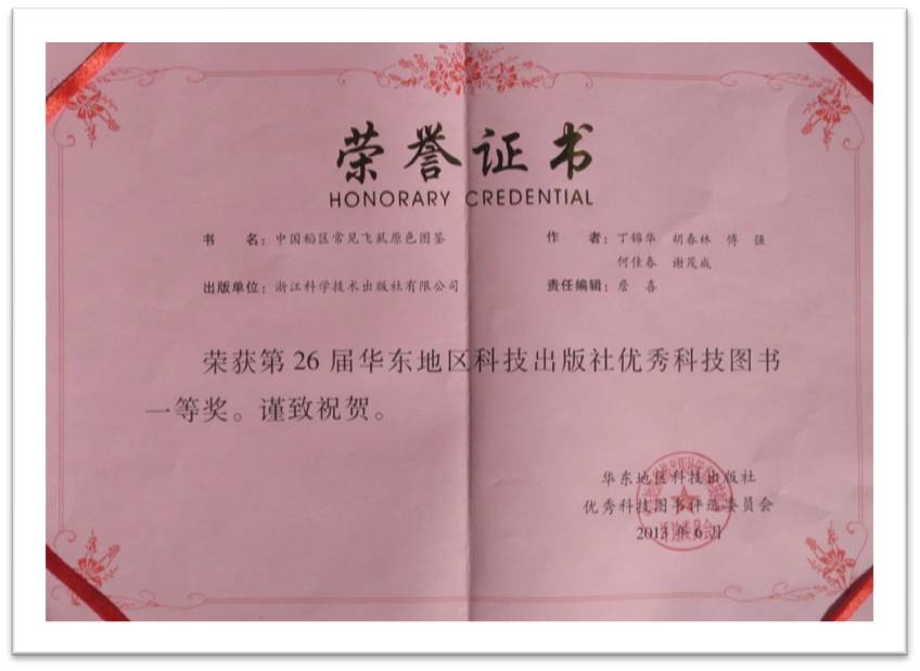 日前获知,《中国稻区常见飞虱原色图鉴》荣获第26届华东地区科技出版社优秀科技图书一等奖。该书由冰球突破mg正规官网丁锦华、胡春林,中国水稻研究所傅强、何佳春及广西壮族自治区昭平县农业局谢茂成共同编著,于2012年在浙江科学技术出版社出版,责任编辑詹喜。书中根据多年积累的资料,以文字和图片相结合的形式,记述了我国稻区常见飞虱29属35种,内容系统、精练,图片直观、实用,装帧设计精美,具有较高的学术水平。可供各级植保技术人员和昆虫学研究者参考使用。