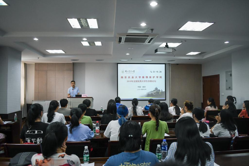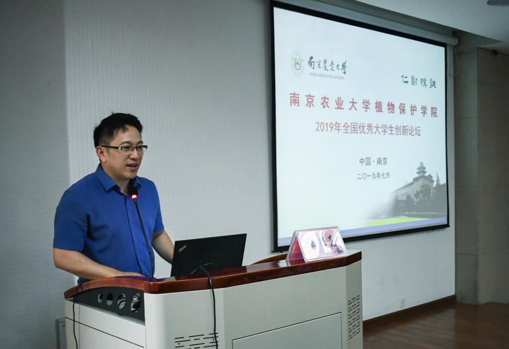 邵刚书记首先致欢迎辞,介绍了本次优秀大学生创新论坛的意义,强调植物保护领域各高校紧密联系,希望同学们以此次论坛为依托,明确各高校在植物保护教育领域的优势,促进各高校之间的交流与联系;同时让学员深入了解冰球突破mg正规官网,了解冰球突破mg正规官网。随后,他介绍了南农的发展概况,指出植物保护专业在第四轮学科评估中获得A+,学院先后涌现出一批杰出的校友、优秀的中青年教师和创新团队,具有优越的科研平台。他还强调学院非常重视人才培养,曾获得国家教学成果二等奖、江苏省教学成果特等奖等奖项。最后他勉励各位优秀学子把握此次交流的机会,充分了解学院的优势和特色。