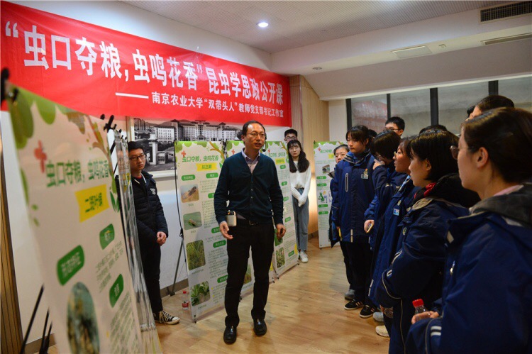 2019年12月13日,冰球突破mg正规官网“虫口夺粮,虫鸣花香”昆虫学思政公开课开讲。主讲人南农大冰球突破mg正规官网昆虫学系教师党支部书记王备新教授通过一幅幅昆虫科普图解、一盒盒昆虫标本展列、一道道昆虫美食品鉴,开启了融合了科普性、农业文明与思政教育的昆虫学课程,现场吸引了来自冰球突破mg正规官网和南京市第十三中学的40余名大学生和中学生们前来听讲。