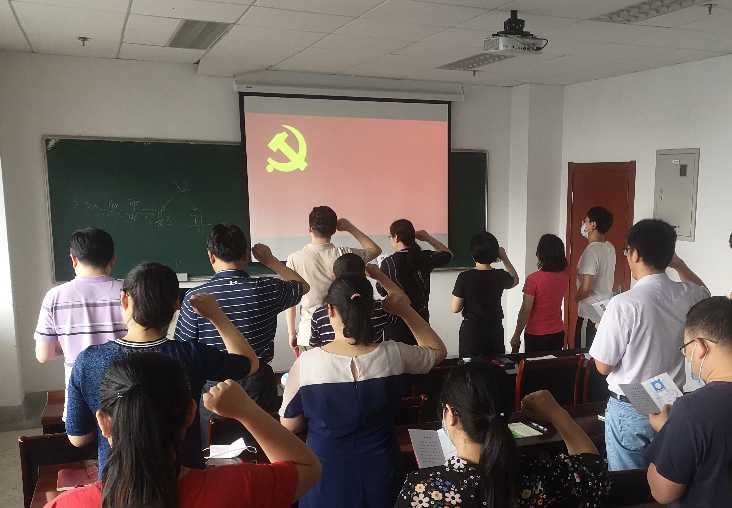 新当选的支委带领支部全体党员重温入党誓词,让党员重温申请入党时的思想激情和奋斗追求,进一步增强党性觉悟,以更加饱满的工作热情投入到世界一流学科建设和当前疫情防控工作中。