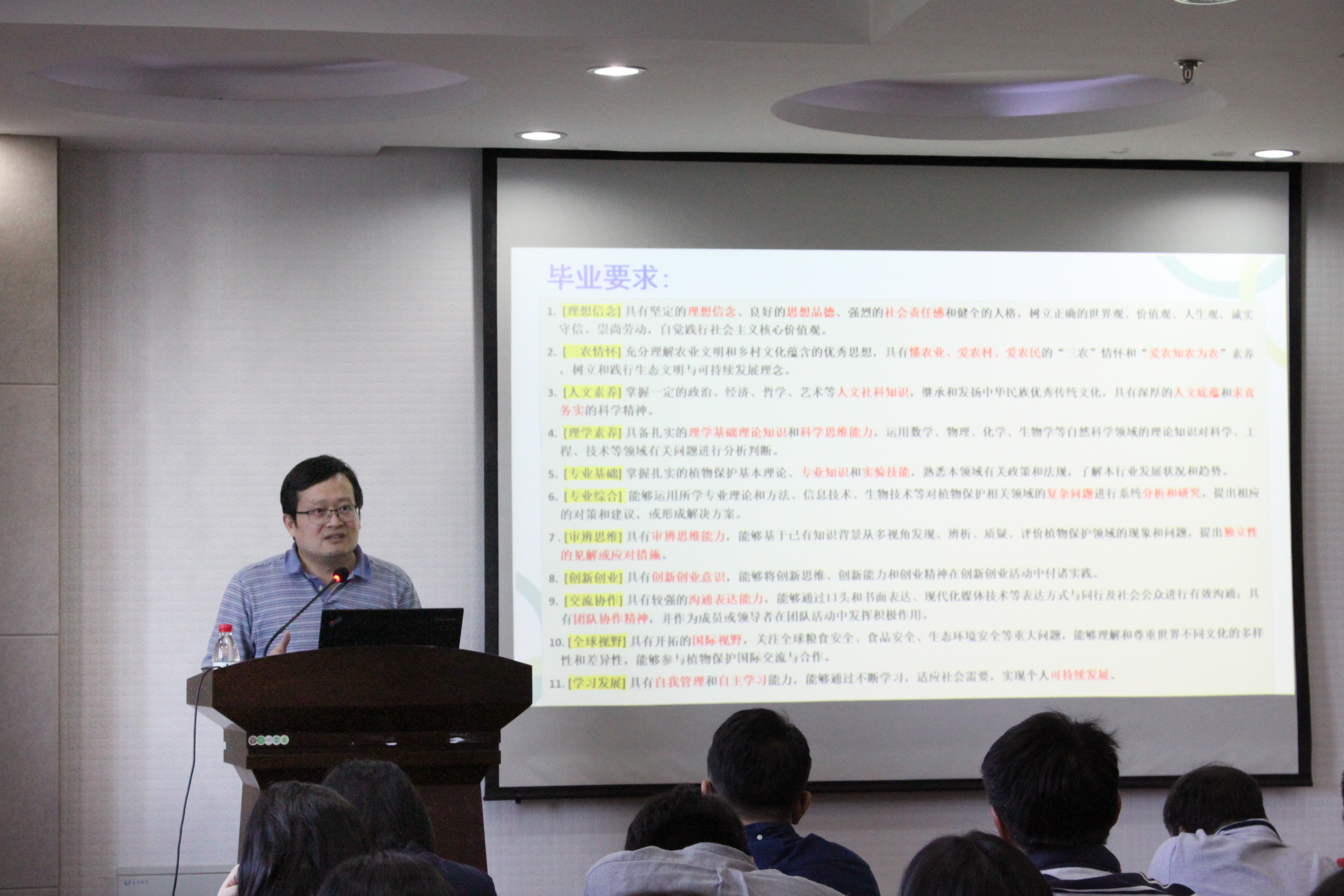 王舒桐同学代表新生发言,以一名新生的角度解读大学,立志成为以强烈爱国心为基础的,有素质、有知识,为社会、为国家做出贡献的植保人!