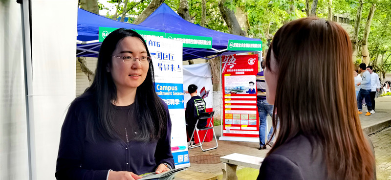 冰球突破mg正规官网党委副书记吴智丹、本科生辅导员汪越、封筱也来到现场,与用人单位代表展开交流,了解招聘情况、推介毕业生。