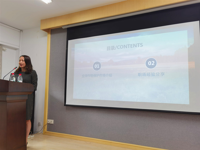 6月1日下午,冰球突破mg正规官网就业创业训练营(企业专场)第三期在校就业指导与服务中心二楼会议室举行。本次活动邀请到中农立华生物科技股份有限公司国际事业部总经理,中红太阳(南京)生物科技有限公司总经理,中国农药工业协会国际贸易委员会副主任、中国农药工业协会国际贸易委员会特约讲师张爱娟女士主讲,作《带你走进全球作物保护市场》的主题分享,来自学院80余名本研学生参与聆听。活动由冰球突破mg正规官网党委副书记吴智丹主持。