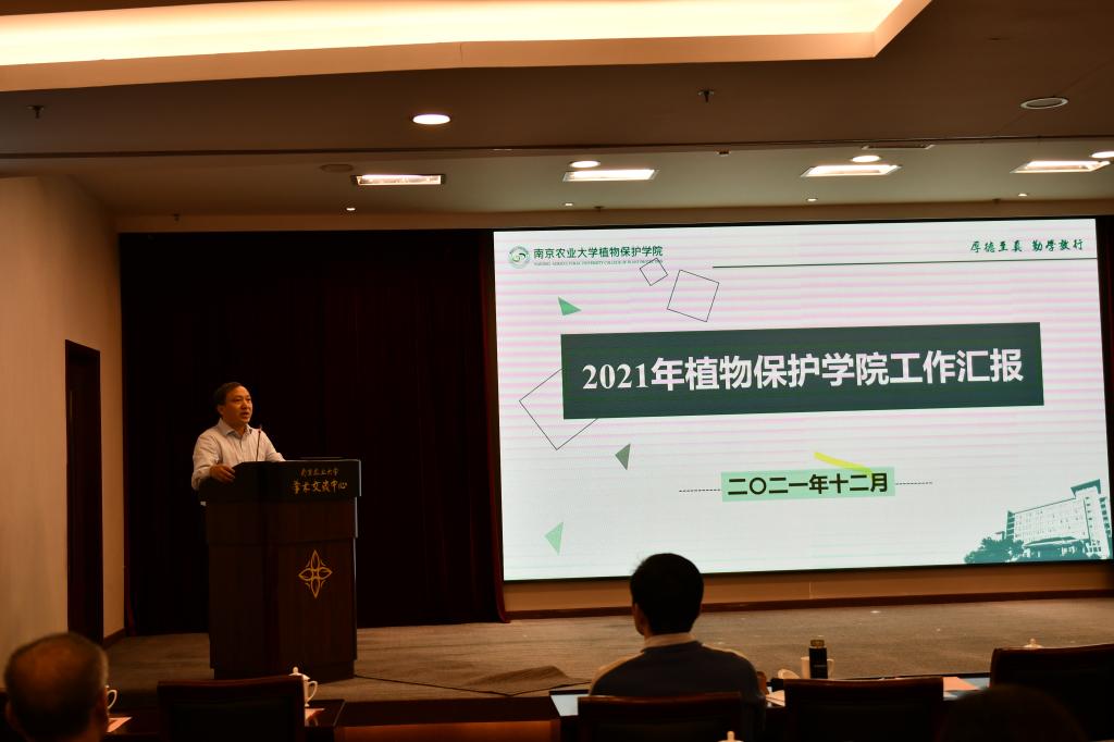 院长张正光做学院年度工作总结。2021年是中国共产党成立100周年,也是南农植物保护学科肇始100周年。学院立足实际,深入学习贯彻习近平新时代中国特色社会主义思想,紧紧围绕立德树人根本任务,加强党的全面领导,把牢办学方向;牢记立德树人初心,深化教育改革创新,提升育人成效;坚持科技自立自强,服务国家战略需求,增强学科实力,不断提高学院师生思想政治水平和强农兴农本领,扎实推进各项工作再上新台阶。本年度学院党委荣获先进基层党组织,1项党建案例入选江苏高校党建工作典型案例100例,王源超入选南京市十大科技之星,胡白石获全省高校优秀共产党员,4位青年教师入选各类青年计划,3位博后入选全国博新计划资助。新增国家自然科学基金31项,发表SCI论文180篇。