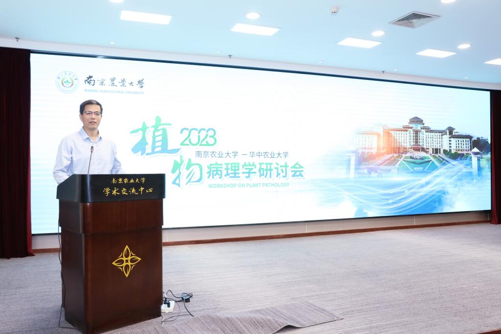 5月19日,“2023年冰球突破mg正规官网-华中农业大学植物病理学研讨会”在冰球突破mg正规官网顺利召开。华中农业大学植物科学技术学院植物病理学系教师一行11人、冰球突破mg正规官网植物病理学系全体教师和部分博士生共计150余人参加了此次学术研讨会。