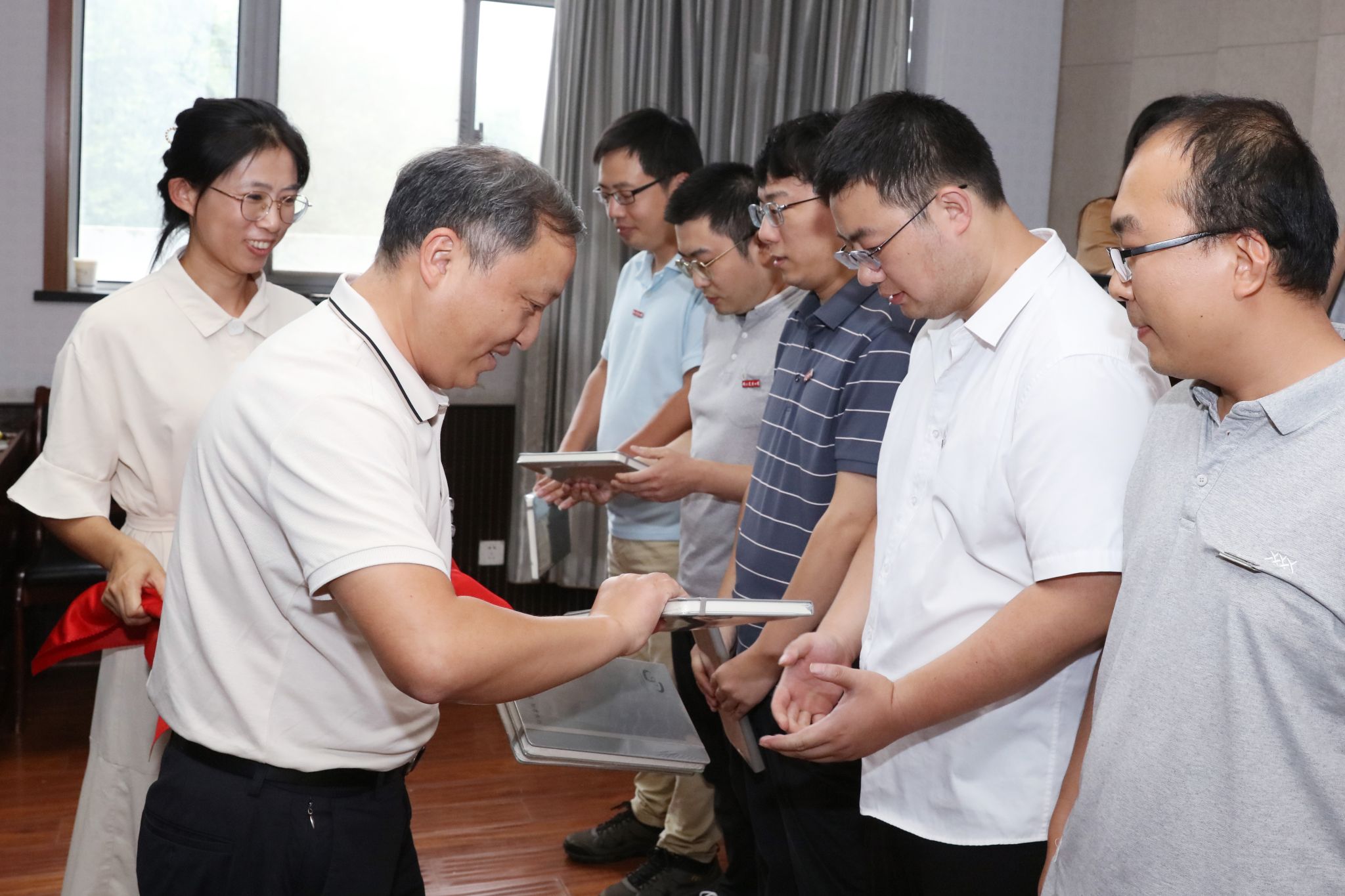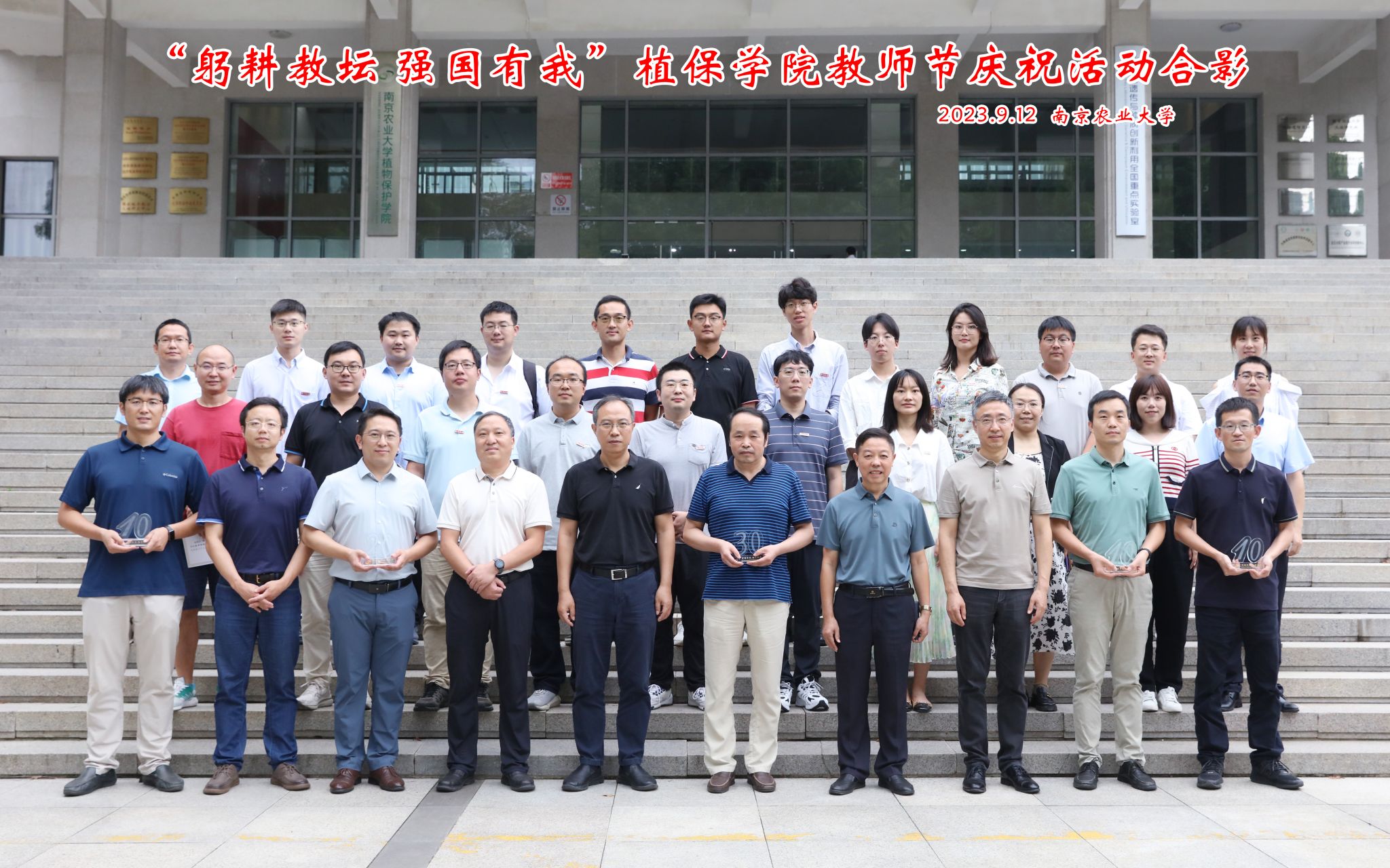 学院院长张正光为光荣在岗10周年的王兴亮、叶文武、吴顺凡等老师,在岗20周年的邵刚老师,在岗30周年的李国清老师颁发了纪念奖杯,5位老师分享工作感悟。