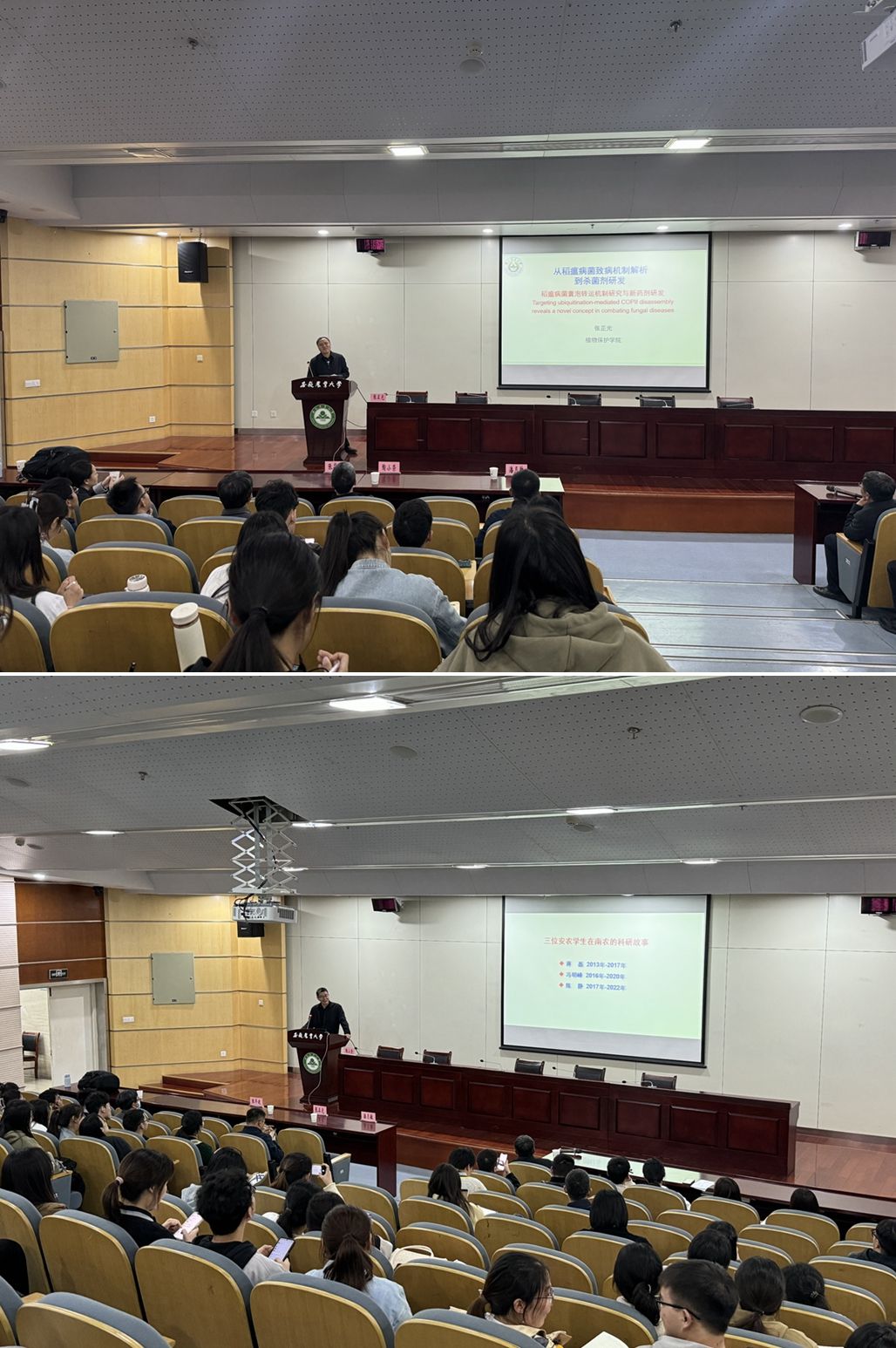 在学术交流报告会现场,冰球官网张正光院长、陶小荣教授分别受邀作学术报告,安农植保院教师、研究生及本科生代表聆听了报告,现场反响热烈。