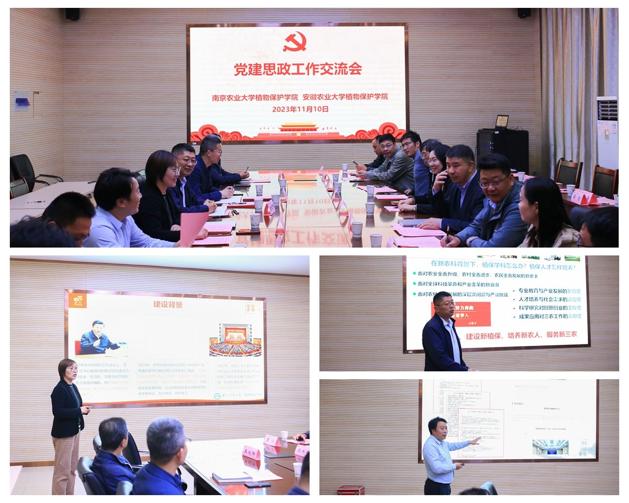 随后,双方人员分别参加党建思政工作交流和学术交流报告会两个分会场活动。在党建思政工作交流会现场,刘柳、汪小强、唐庆峰分别介绍了安农冰球突破mg正规官网党建工作、思政工作、学院人才培养工作情况,双方围绕重点工作展开交流。