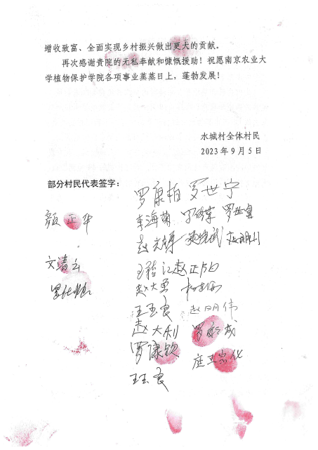 学院先后选派陈长军教授、薛晓峰教授等技术专家赴水城村现场调研蔬菜、蓝莓等产业发展中的科学问题;举办了蓝莓病虫害防治、蔬菜病虫害防治、有机蔬菜产业体系介绍等培训课程;邀请了麻江县植保技术人员参加第43期全国农作物病虫测报技术培训班;邀请了江苏笨农生态农业有限公司、杭州欢田喜地农业科技有限公司等优秀企业奔赴水城村,宣传推广水城村的农产品和劳动供给,共商村企合作之路。先后培训基层技术人员300余人次;使用党费慰问困难户4万元;消费扶贫累计6万余元;通过电商平台销售水城村蜂蜜500斤;赠送太阳能防虫灯、生物源农药等物资20余万元;赠送住商肥料64吨,为促进该村党支部建设和产业发展做出了积极贡献。