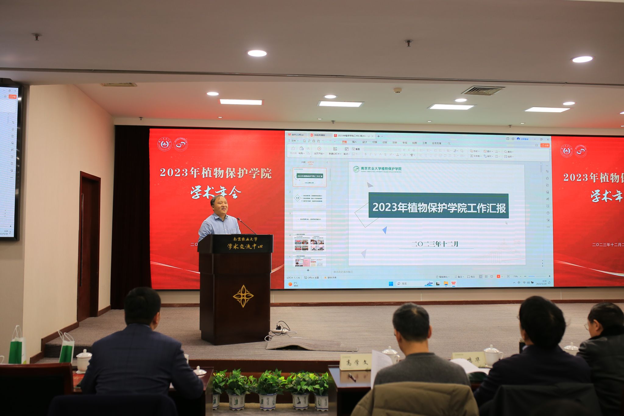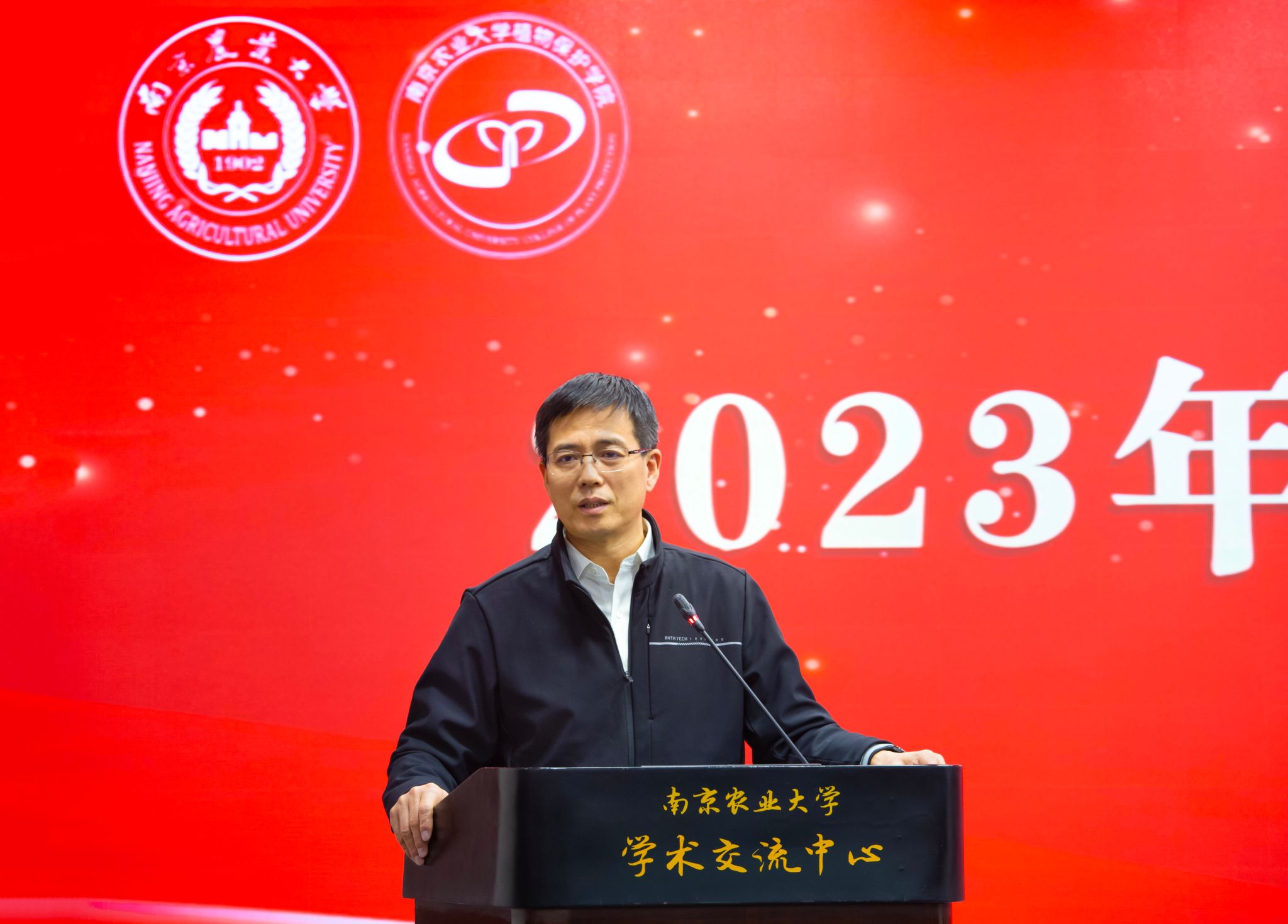 2023年12月28日,冰球突破mg正规官网2023年度学术年会在我校学术交流中心六楼报告厅举行。校党委常委、副校长王源超,退休教师代表沈晋良教授、杨莲芳教授、吴耀清教授、翟保平教授,杭州欢田喜地农业科技有限公司总经理李涛,南京博兰德生物科技有限公司总经理李赟、市场部经理杨永刚,格来赛生命科技(上海)有限公司市场部经理赵晓明等受邀参加年会。校计财与国有资产处副处长(主持工作)郑岚应邀作专题报告。植保院领导班子成员、全体教职工以及部分研究生参加会议。