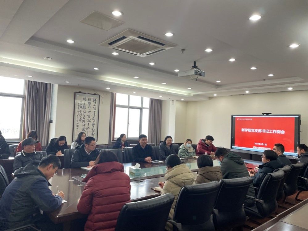 许承保向全体党支部书记传达了中共冰球突破mg正规官网第十二届委员会第十六次全体(扩大)会议精神,并结合新学期学校党政工作要点,部署本学期党建工作。他强调各支部要坚持把学习宣传贯彻习近平新时代中国特色社会主义思想作为首要政治任务,深入学习贯彻党的二十大精神,学习宣传贯彻《党史学习教育工作条例》,持续巩固拓展主题教育成果,紧紧围绕学院中心工作,进一步激发党建与业务融合新合力,为学院的高质量发展提供坚强的政治保证和组织保证。