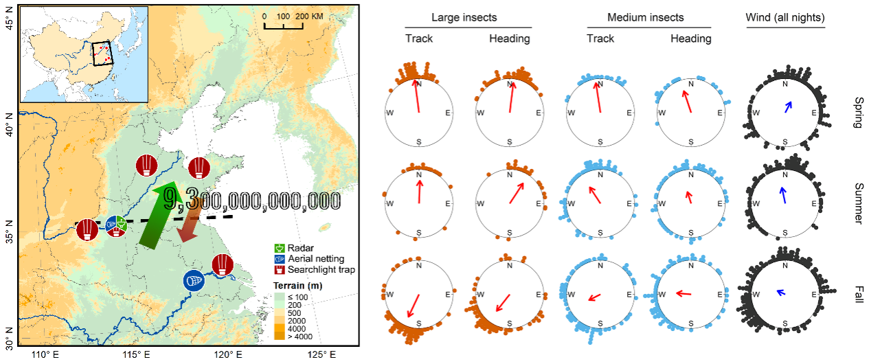 原文链接:Huang JR, Feng HQ*, Drake VA, Reynolds DR, Gao BY, Chen FJ, Zhang GY, Zhu JS, Gao YB, Zhai BP, Li GP, Tian CH, Huang B, Hu G*, Chapman JW*. 2024. Massive seasonal high-altitude migrations of nocturnal insects above the agricultural plains of East China. PNAS, https://doi.org/10.1073/pnas.2317646121