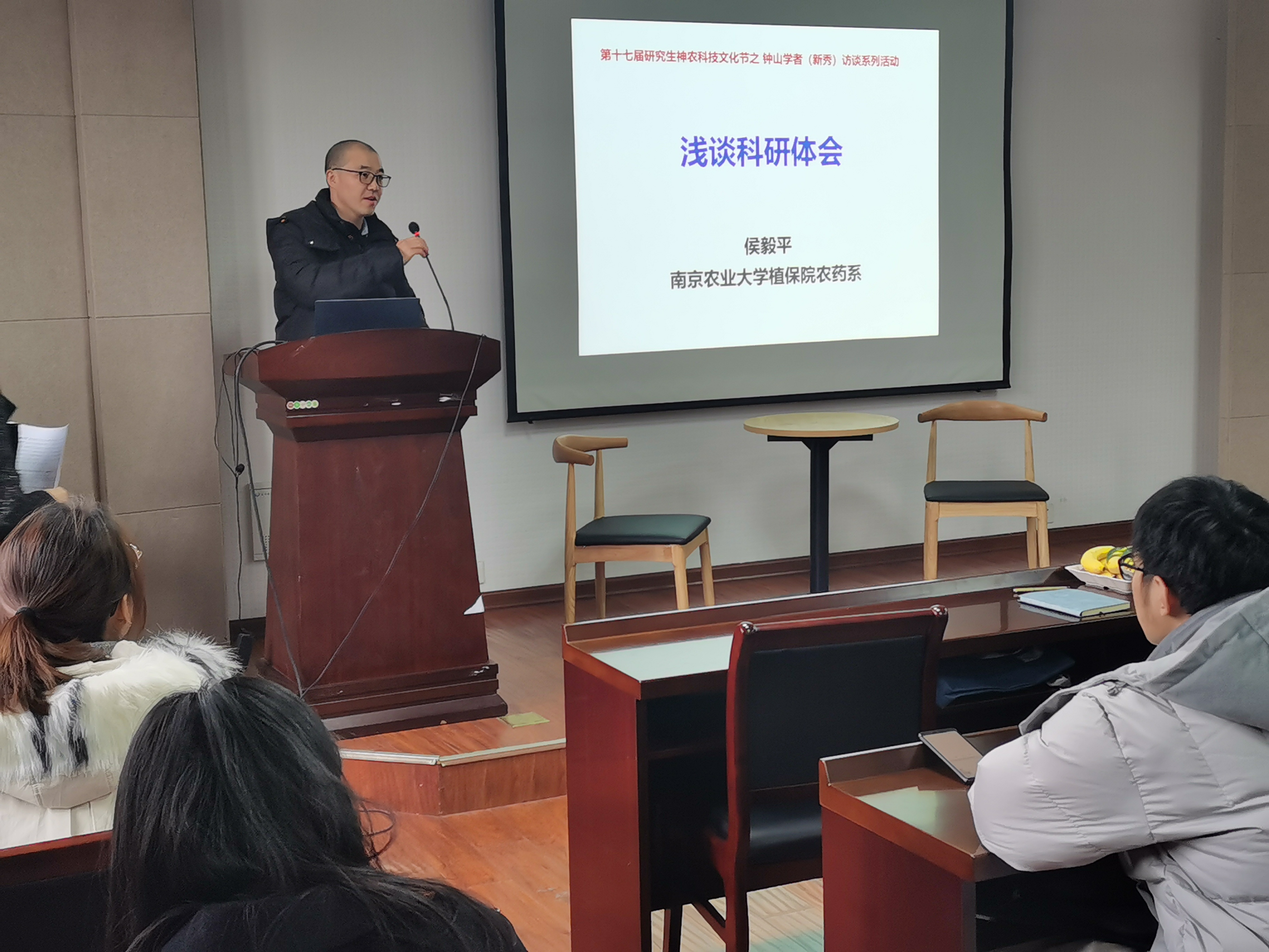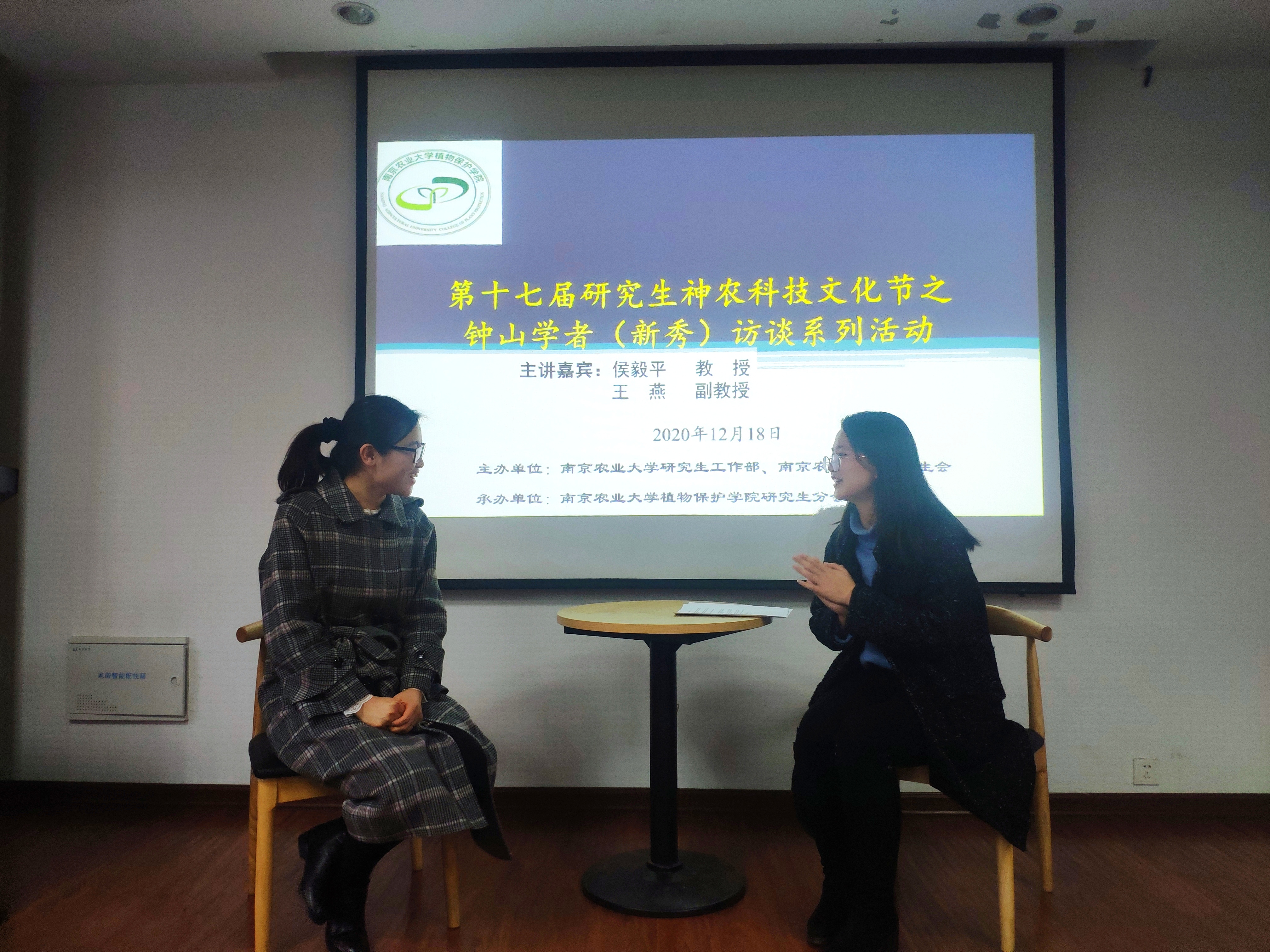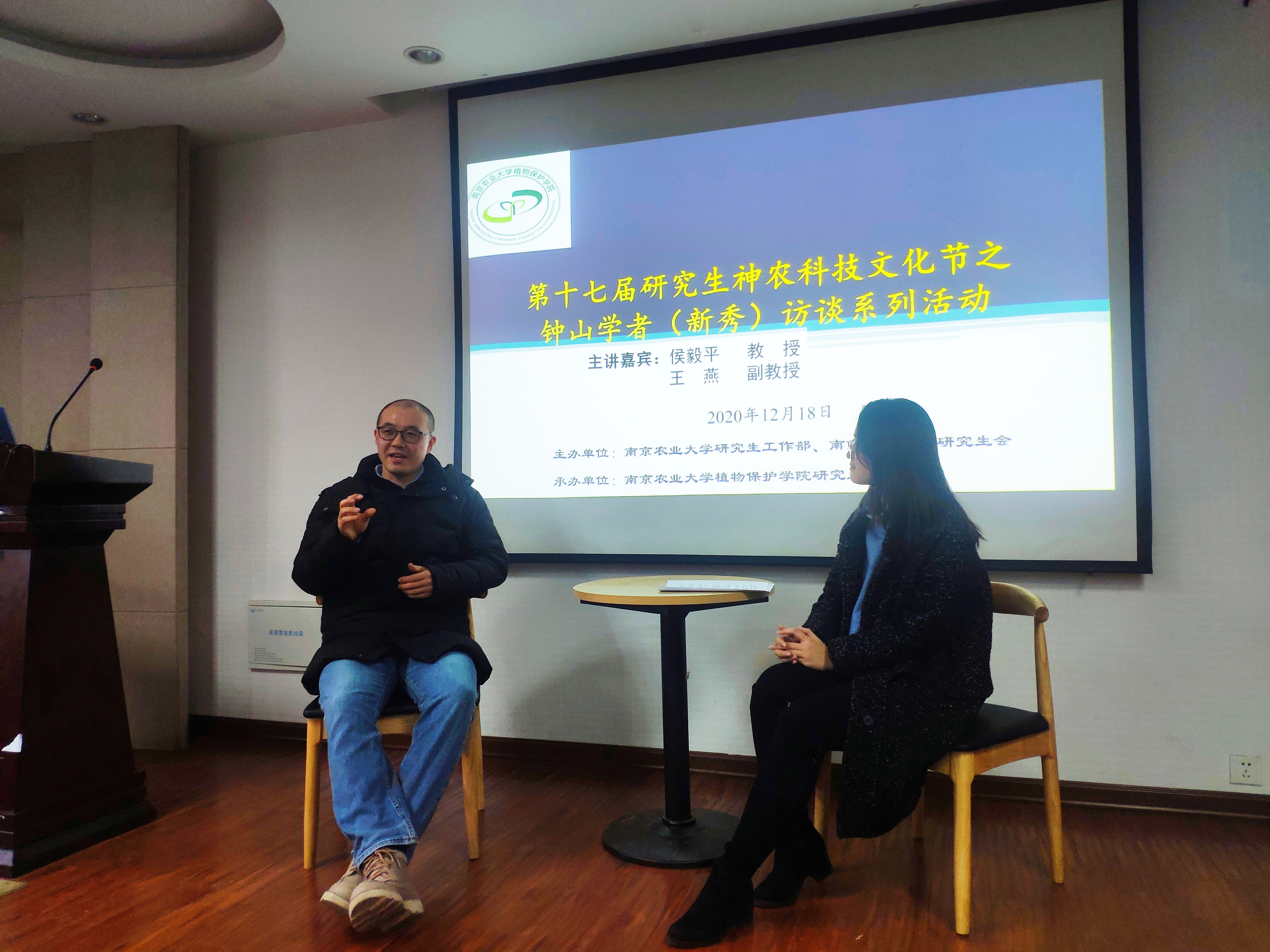 12月18日下午,由冰球突破mg正规官网研究生工作部和冰球突破mg正规官网研究生会主办,冰球突破mg正规官网研究生分会承办的第十七届神农科技文化节之钟山学者(新秀)访谈系列活动(冰球突破mg正规官网专场)在理科楼C303成功举办,钟山学术骨干、农药系侯毅平教授和钟山学术新秀、植物病理系王燕副教授做客钟山学者(新秀)访谈现场,120余名研究生参加了本次访谈活活动,活动由吴双同学主持。