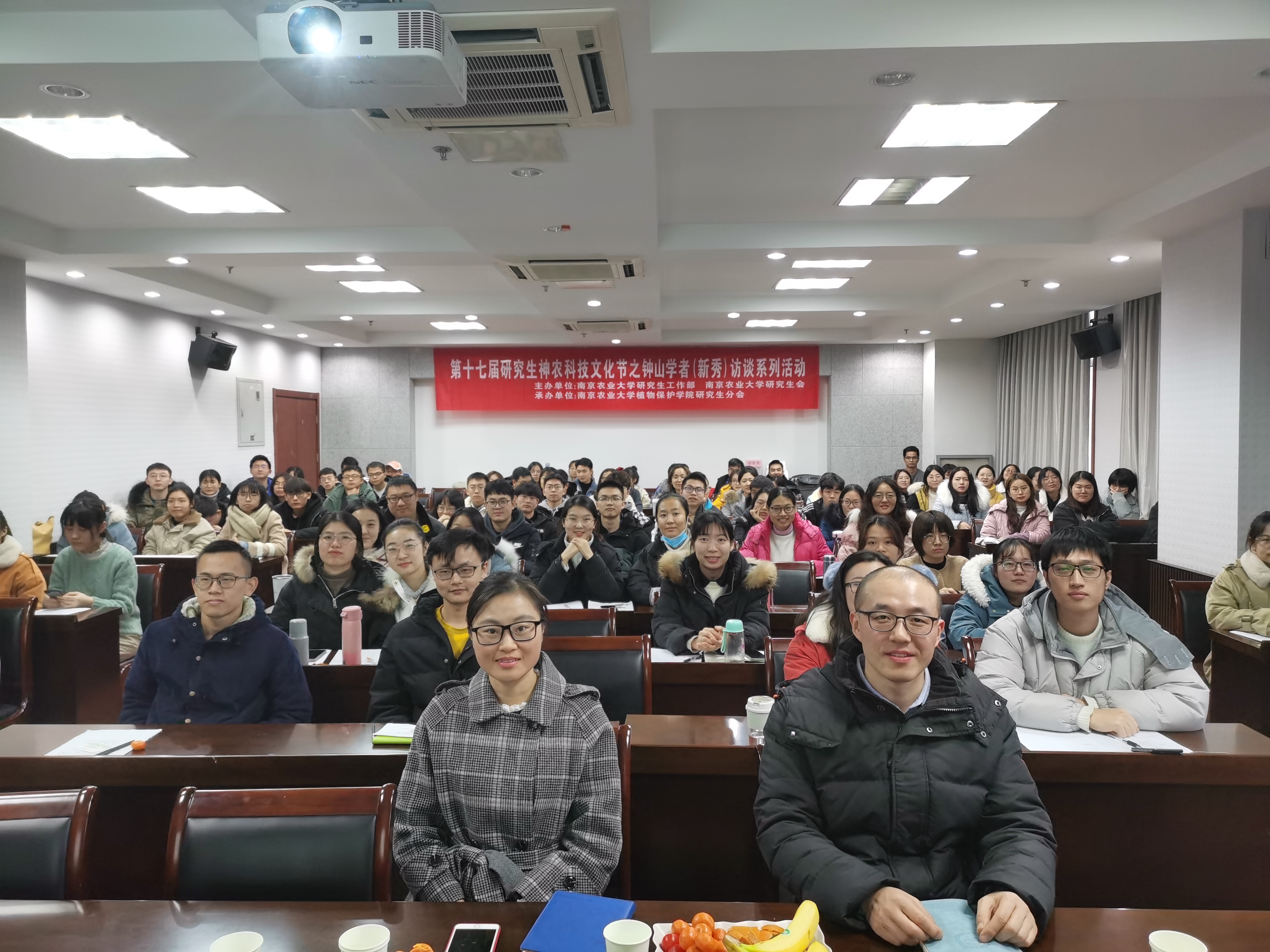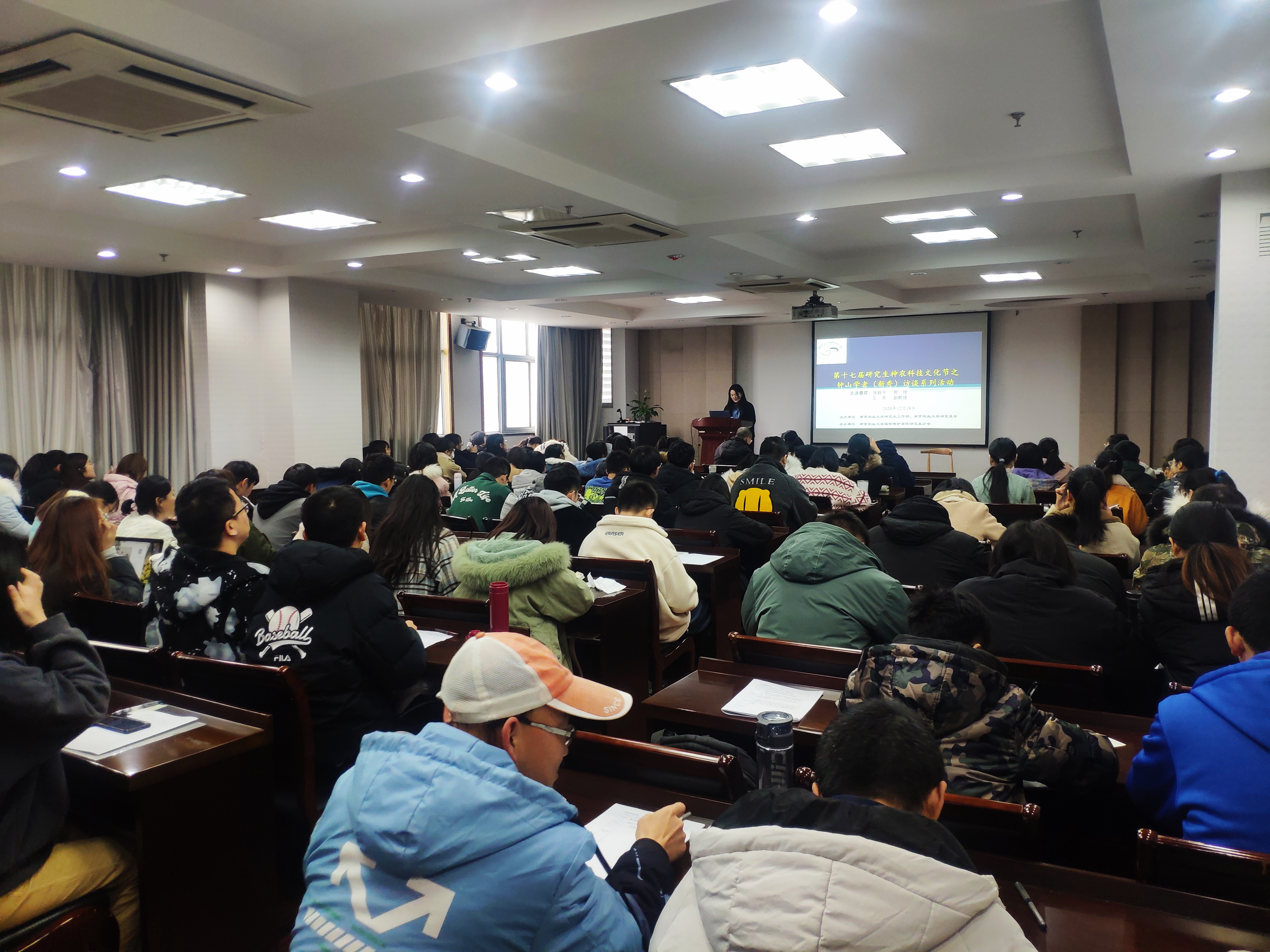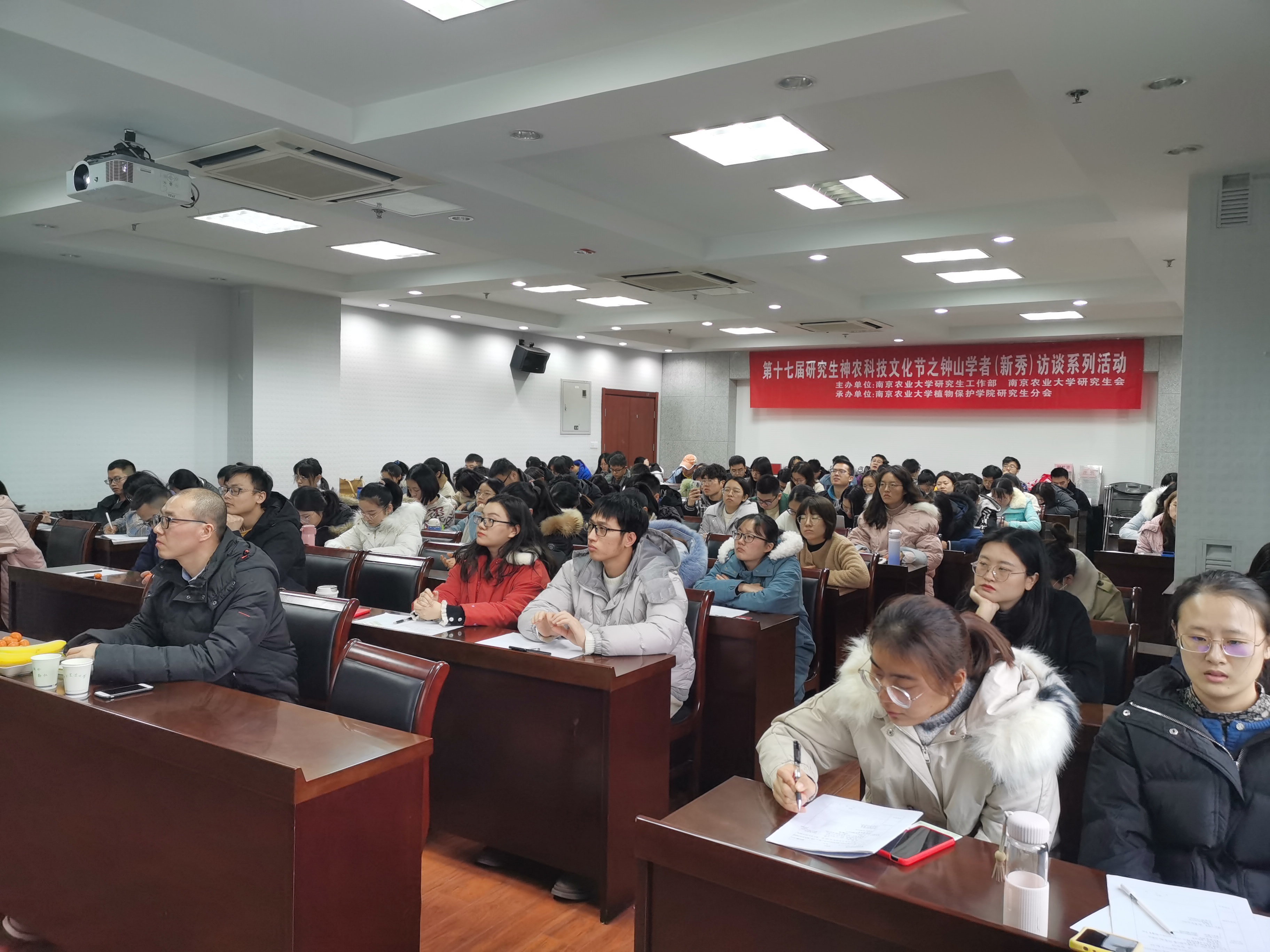 12月18日下午,由冰球突破mg正规官网研究生工作部和冰球突破mg正规官网研究生会主办,冰球突破mg正规官网研究生分会承办的第十七届神农科技文化节之钟山学者(新秀)访谈系列活动(冰球突破mg正规官网专场)在理科楼C303成功举办,钟山学术骨干、农药系侯毅平教授和钟山学术新秀、植物病理系王燕副教授做客钟山学者(新秀)访谈现场,120余名研究生参加了本次访谈活活动,活动由吴双同学主持。
